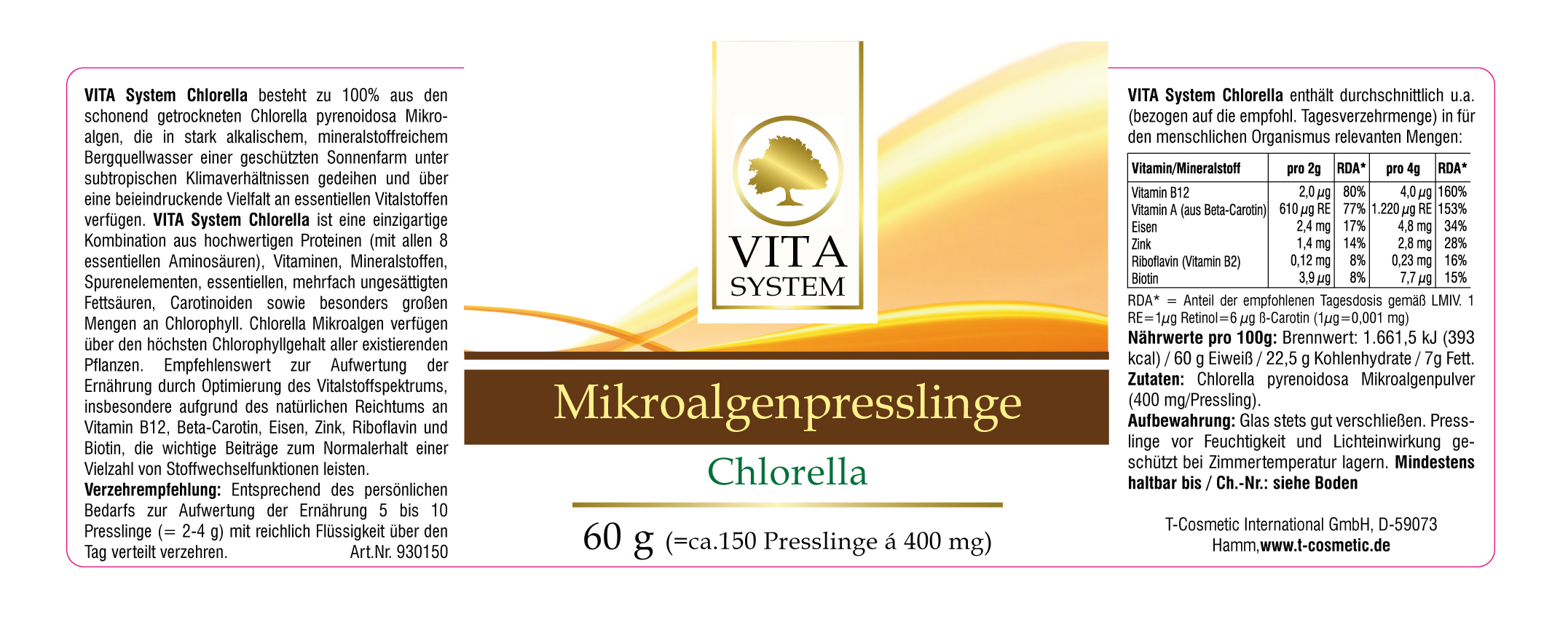 Produktinformationen "Chlorella Mikroalgenpresslinge"