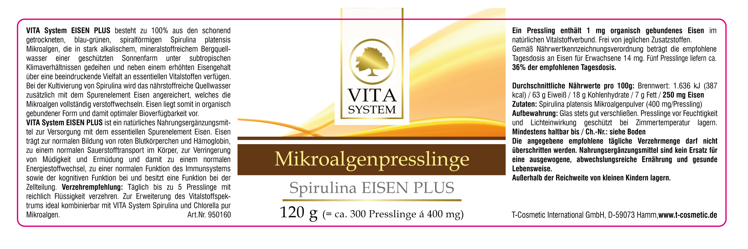 Produktinformationen "Spirulina Eisen Plus Mikroalgenpresslinge"